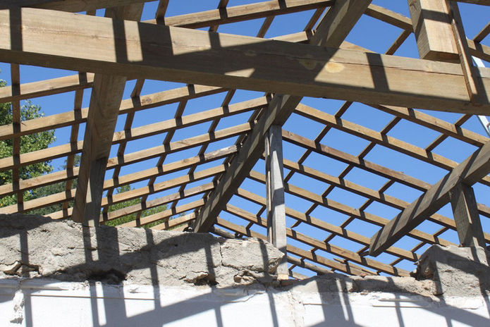 The path to the entrance under a vine trellis appears after passing the rebuilt main gate. This route takes the visitor to an area we have chosen to expand, including a vestibule and a bedroom.