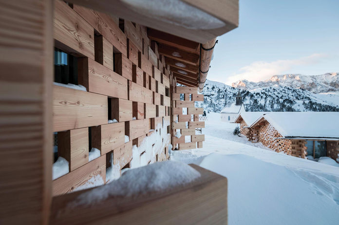 The Zallinger, designed by noa* (Network of Architecture), is situated in the northern Italian Alps and represents a dialogue between historical preservation and modern sustainable architecture. Inspired by nineteenth-century barns, the project revitalizes the old alpine village with new mini-chalets, enhancing the accommodation capacity while respecting the landscape. The chalets are constructed using prefabricated wood panels, reducing environmental impact and construction time. The wooden facade, featuring large operable panels, blends traditional aesthetics with modern functionality, providing stunning views of the alpine scenery. The interiors continue this wooden theme, creating a warm and inviting atmosphere.